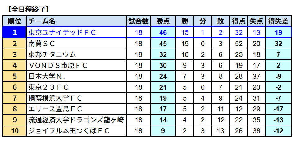 関東サッカーリーグ1部は最終節で東京ユナイテッドFCの優勝が決まりました。